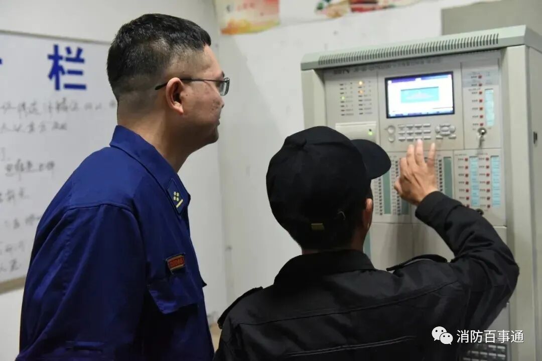 消防值守人员演示着火时消防控制室消防联动控制器如何报警