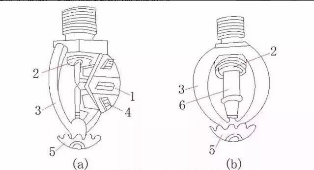 a) 易熔合金闭式喷头 b)玻璃瓶闭式喷头