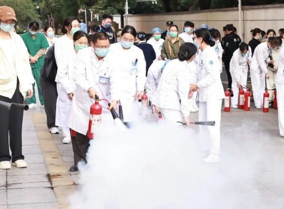 会议结束后春江人民医院后勤、物业相关人员在消防救援大队的专业指导下,进行了初期火灾扑救现场实战演练,有力提升了医疗机构应急处置实战能力。