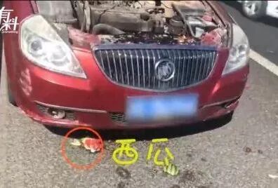 2019年8月1日,浙江金华高速交警巡逻时,发现一辆打开引擎盖的轿车,地上还散落着一地碎西瓜。驾驶员杨某称,汽车突然自燃,情急之下他将车上的两个西瓜拿出来砸在着火部位,才将火扑灭。经过民警一番检查,此次起火应该是油路或者电路老化,在高温下引发的自燃,索性杨某采取措施及时,没有造成严重的后果。